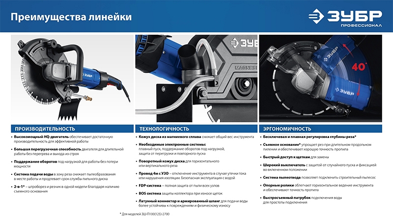 Преимущества электрического резчика по бетону Зубр Профессионал РЭ-2700-355: